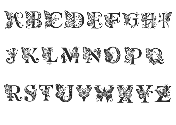 Personalisierung nach Wahl: jeder Buchstabe im Schmetterlings-Look.