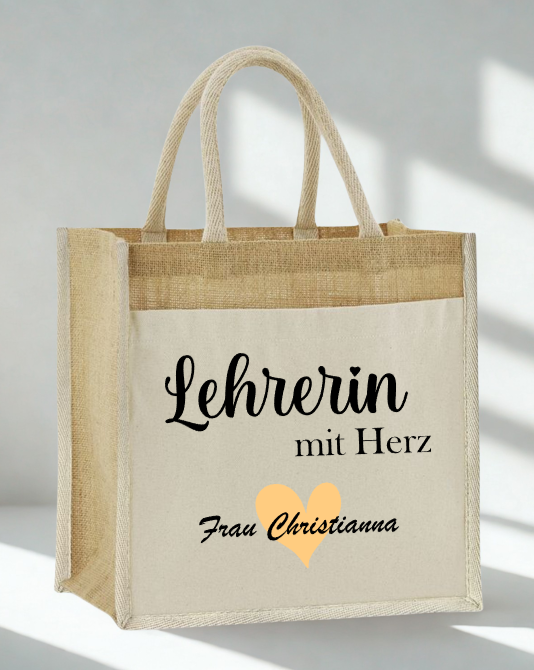 Geantă de Iută Personalizată – Ediția Profesoară / Educatoare cu Inimă ❤️
