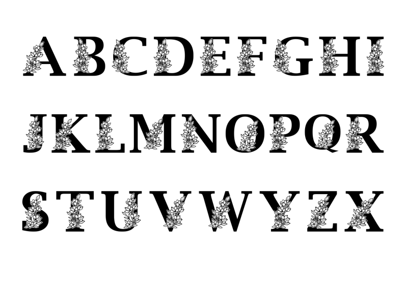 ✅ Monogram Flower – inițiala serif cu buchet floral la bază, în negru elegant