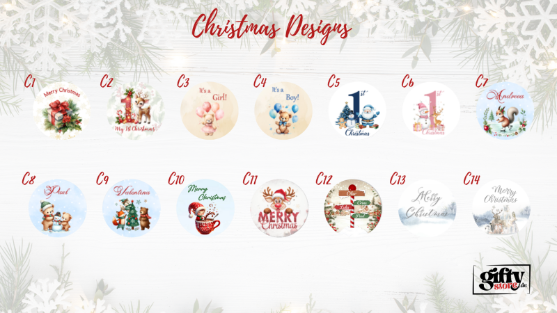 ✅ Design Crăciun la alegere: C1-C14 (festiv) sau D1-D6 (elegant)